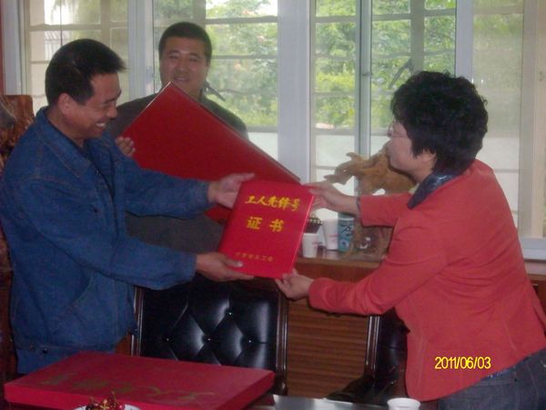 2011年6月3日,天水市工會(huì)領(lǐng)導(dǎo)劉榮芳、陸幼晨一行來(lái)到天華鑄機(jī),為被評(píng)為甘肅省“工人先鋒號(hào)”榮譽(yù)稱號(hào)的天華鑄機(jī)電器車(chē)間授榮譽(yù)證書(shū)和獎(jiǎng)牌。