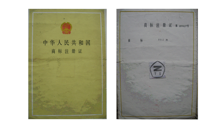 商標(biāo)注冊(cè):1985年2月27日由《中華人民共和國國家工商行政管理局商標(biāo)局》批準(zhǔn)為注冊(cè)商標(biāo),核定使用商標(biāo)第10類(國際分類第7類)注冊(cè)號(hào)220927 “TSZ” 牌商標(biāo)注冊(cè)證。